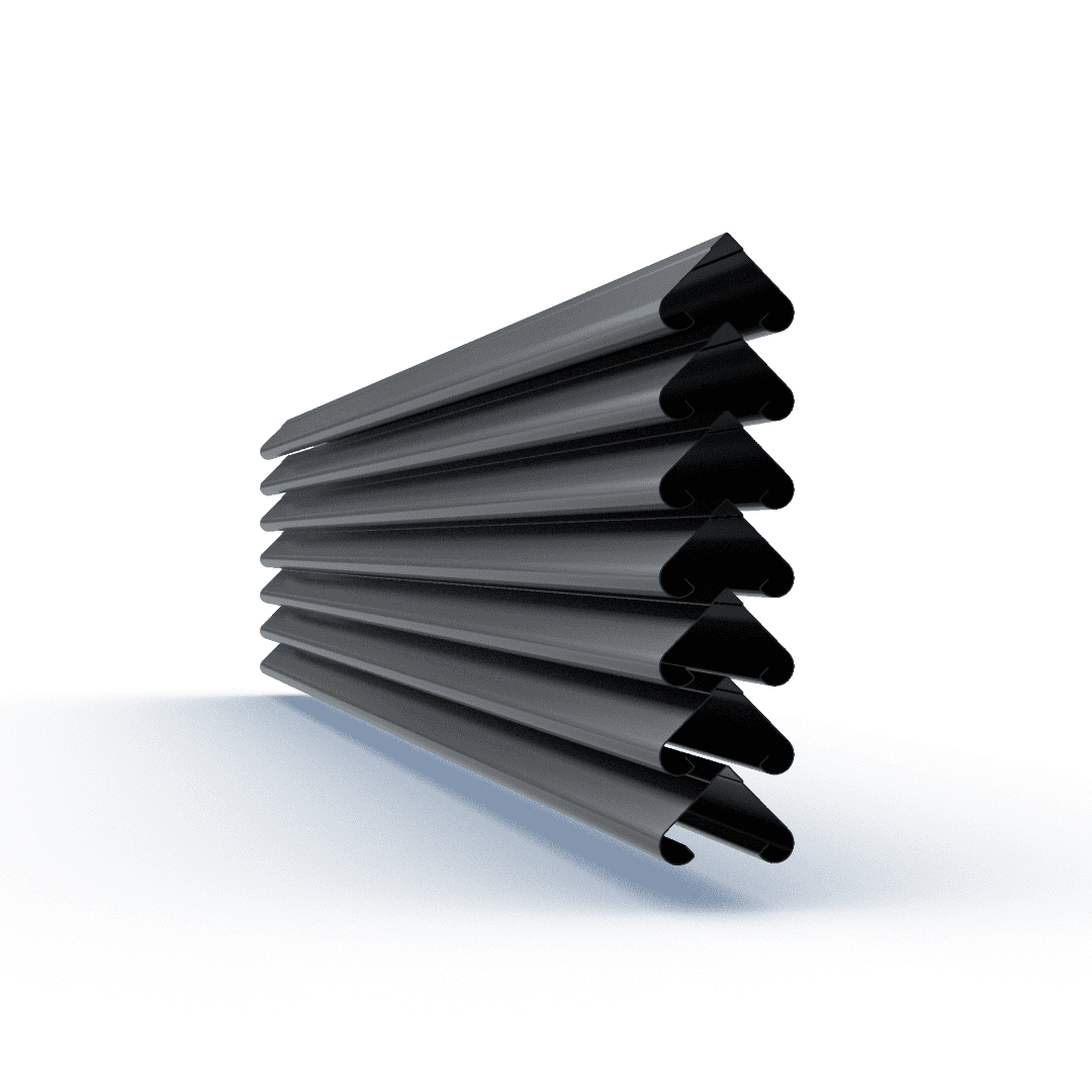 Ламель ТВИНГО одинаково красива с обеих сторон. Как будто две ламели рядом, только изящнее, с меньшим расходом стали и с повышенной жесткостью благодаря дополнительному сгибу.